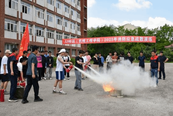 疏散演练活动结束后,开展了消防器材教学体验活动,工作人员向师生们演示灭火器操作方法后,师生代表参与了实际操作演练,切身体验并掌握了灭火器的基本使用方法。