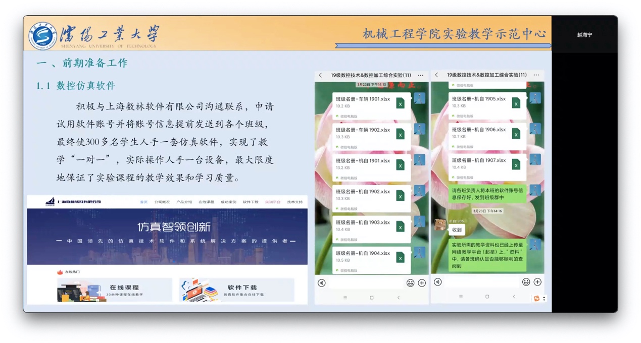 针对一些特殊教学环节例如实验课,教师积极探寻教学资源,因需要安装专业软件,教师积极与软件公司沟通,成功为每位同学安装了数控仿真软件,最大限度的保证了实验课的学习效果和学习质量。生产实习环节通过企业的云参观系统、企业现场直播等方式,以解决员工无法进入企业实地进行生产实习的缺憾。