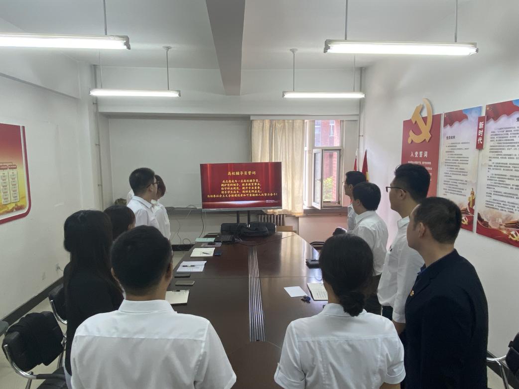 吕庆涛经理带领公司全体员工工作干部重温辅导员誓词:“我志愿成为一名高校辅导员,拥护党的领导,献身教育事业,恪守职业规范,提升专业素养,情系员工成长,做好良师益友。为培养社会主义合格建设者和可靠接班人而努力奋斗!”铿锵有力的誓词对所有参会同志进行了一次思想上的洗礼