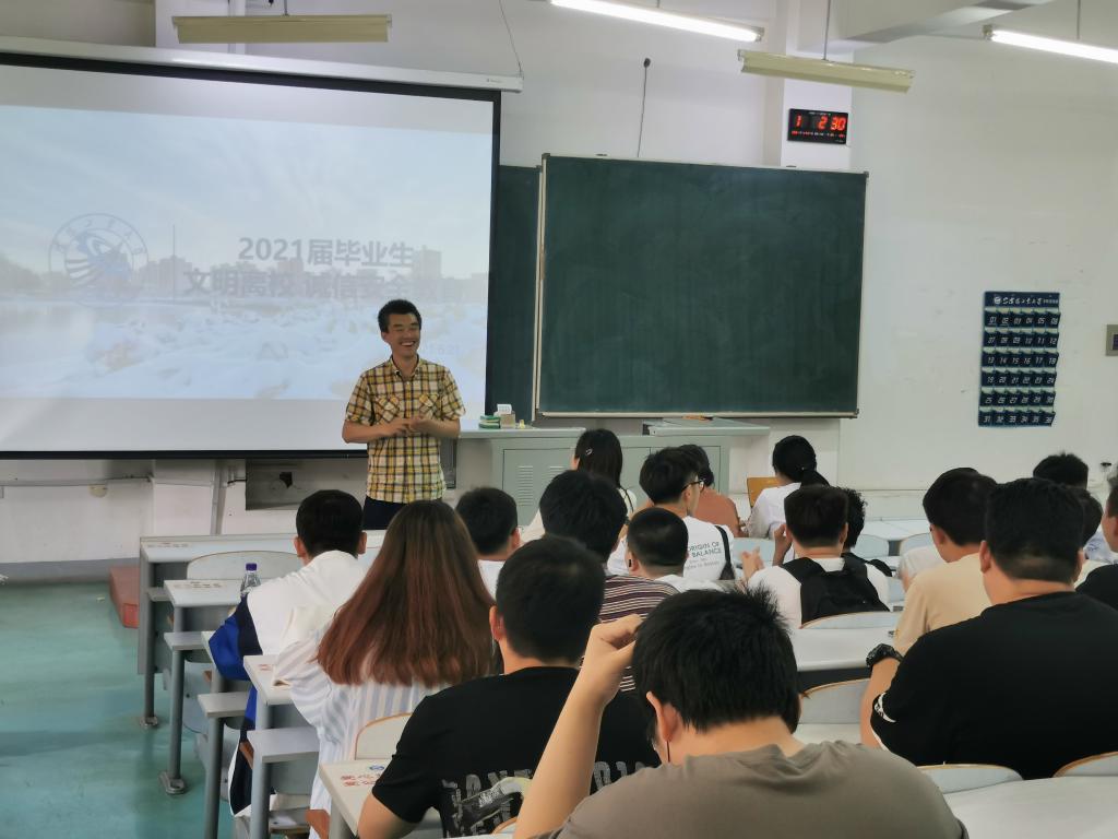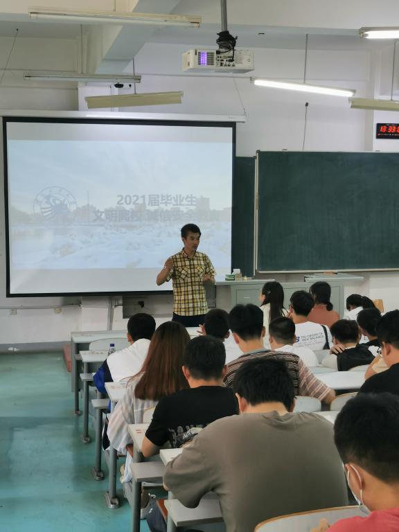 为保障2021届毕业生离校工作顺利完成,增强员工安全意识和诚信责任意识,6月21日,BB贝博艾弗森官网在教学楼c104室召开了“2021届毕业生文明离校诚信安全教育”主题大会。会议由BB贝博艾弗森官网党委副书记兼副经理孙健主持,本科17级辅导员白雪老师、王雪老师,18级辅导员夏怡老师及2021届全体毕业生参加了本次大会。