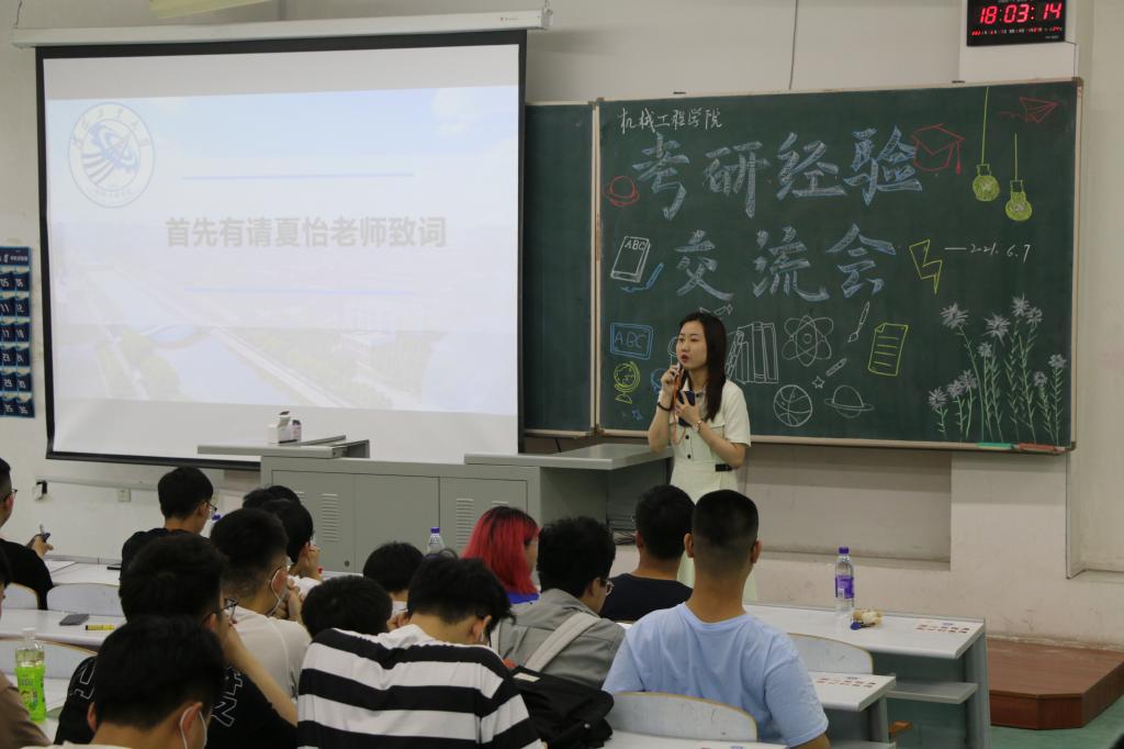 大会开始,BB贝博艾弗森官网2018级辅导员夏怡老师为此次大会致辞,希望通过本次考研经验分享的活动,同学们可以学习到学长学姐的宝贵经验,掌握有效的学习技巧,汲取正能量