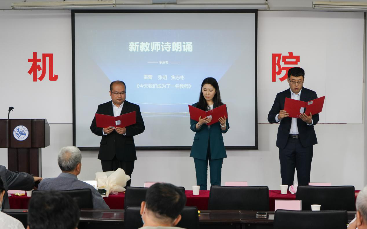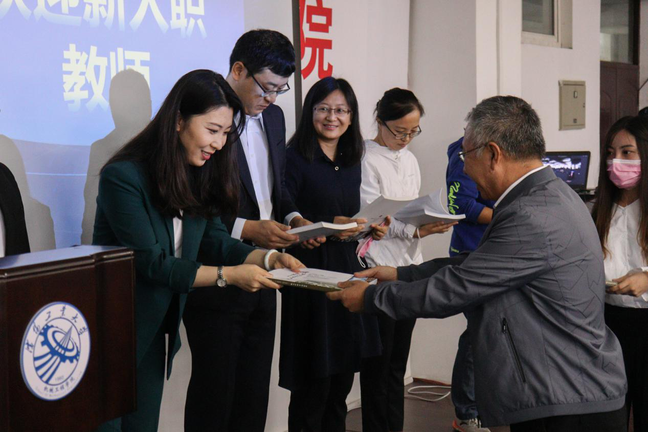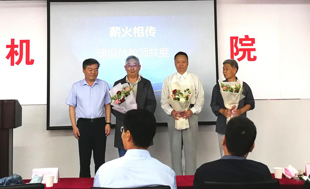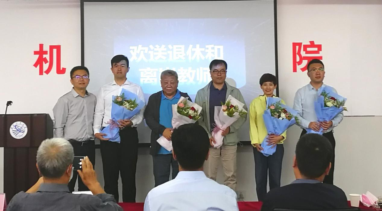 一是新入职教师举行欢迎仪式退休教师金嘉琦、杨琳老师离岗教师石卿志、陈鹏飞、钱鹏老师举行欢送仪式。郑鹏经理为几位新入职教师赠送机械公司院史党政办公室副主任陶启坤为退休及离岗教师赠送鲜花。