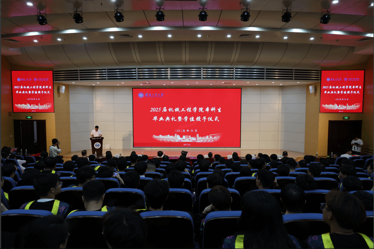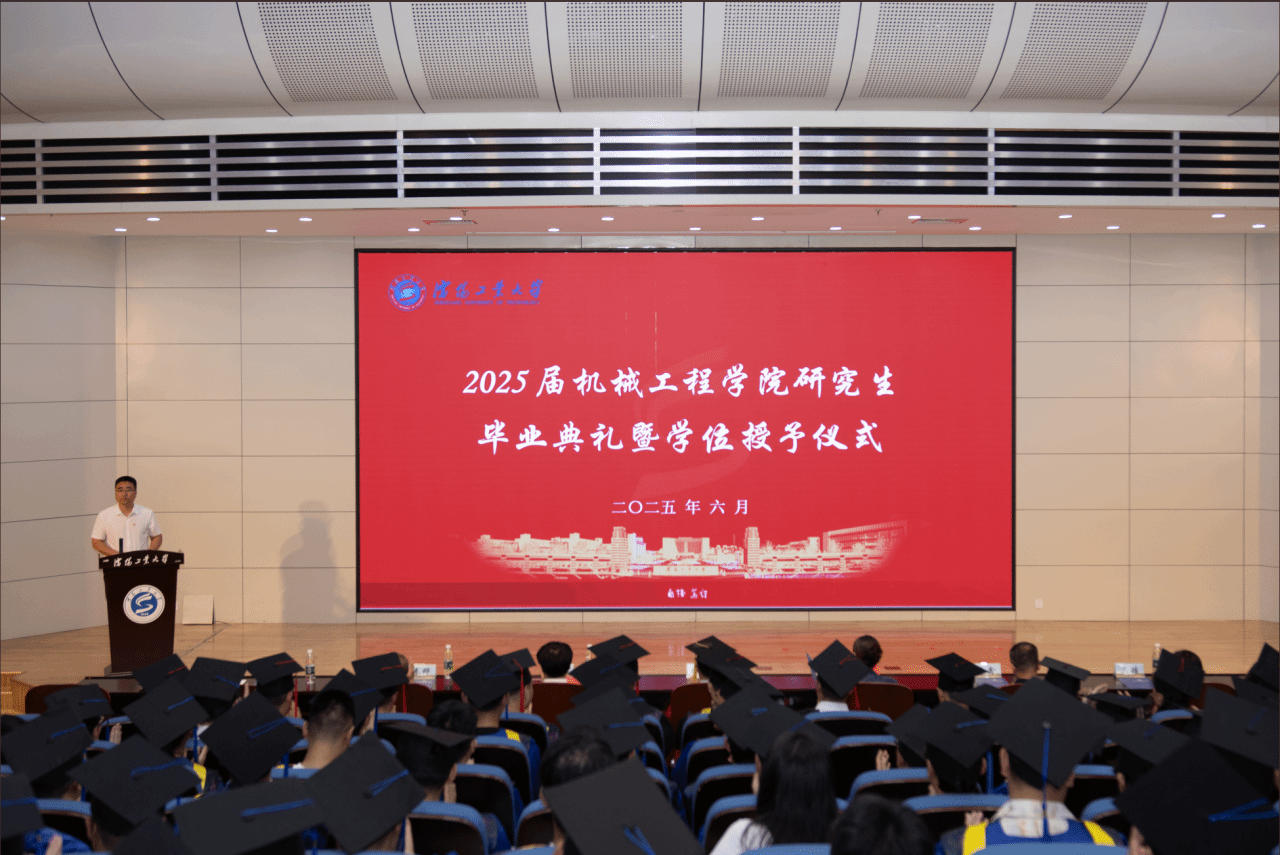 最后,党委书记吕庆涛向毕业生深情寄语,以“幸福”回顾机械学子们1300余日夜的奋斗历程,回顾他们在校园生活里实现专业成长与价值塑造;“叮嘱”中,他期望同学们胸怀开阔、目标坚定、勇担责任,并称母校与公司永远是温暖港湾,盼学子常归;面向“期待”,他紧扣时代目标,强调机械学科关键作用,衷心希望毕业生们以科技强国为己任,博学精工,为国家的繁荣发展贡献自己的力量,最后祝愿同学们毕业快乐,前程似锦。