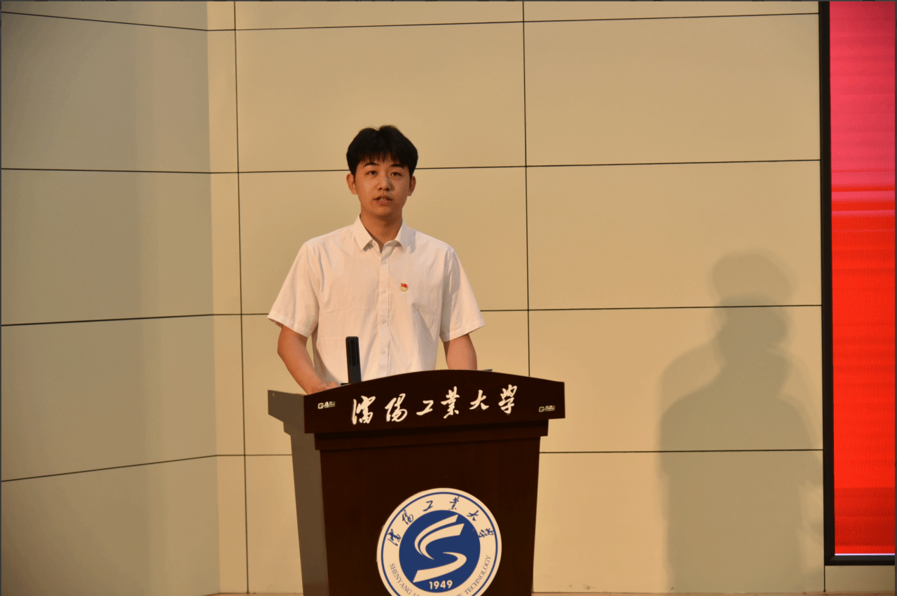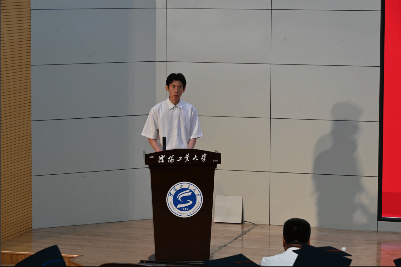 机械2201班王超作为毕业生代表发言。他回顾了在沈工大七年的求学历程,感恩公司的培养和师长的教诲。他号召全体毕业生秉承工大精神,以专业能力服务社会发展,用实际行动为母校争光。