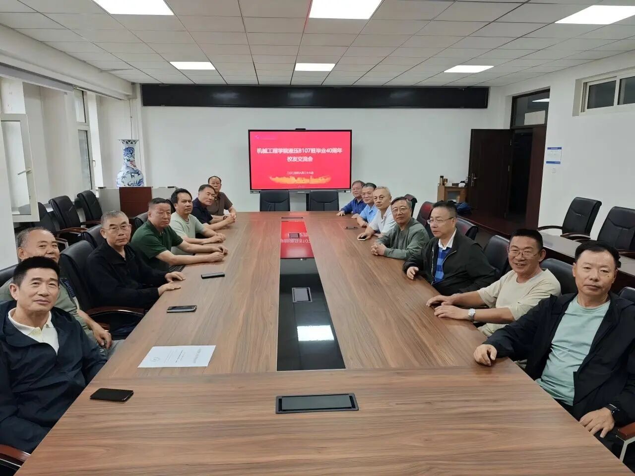 1985届液压专业7班的员工们毕业四十年后重返母校,他们怀揣着激动与喜悦,漫步在熟悉的校园小道上,仔细参观着教学楼、实验室、校史馆等。每到一处,他们都会不时驻足,回忆起当年的求学时光,那些青春岁月里的点点滴滴仿佛就在眼前。在校史馆里,看到老校区的场景,员工们不禁感叹时代的变迁与母校的蓬勃发展,为母校的成就感到无比自豪。短暂休息过后,员工们来到了机械楼312会议室,在这里,他们一边休息,一边谈论着上学时的趣事与回忆,分享着属于他们的青春故事。