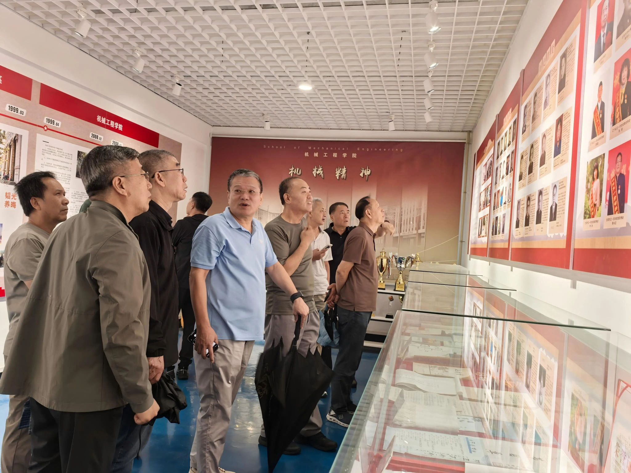 2005届的员工们在公司老师的带领下参观了科技成果展馆,对母校在团队建设、科研创新上的突破赞不绝口。站在公司门口,看着既熟悉又有了新变化的建筑,员工们感慨万千。有人回忆起当年在教室里认真听讲、在实验室里专注做实验的场景,那些为了学业努力奋斗的日子仿佛就在昨天。参观之后,大家又再次穿上了学士服,在机械楼前合影留念,仿佛回到了20年前。