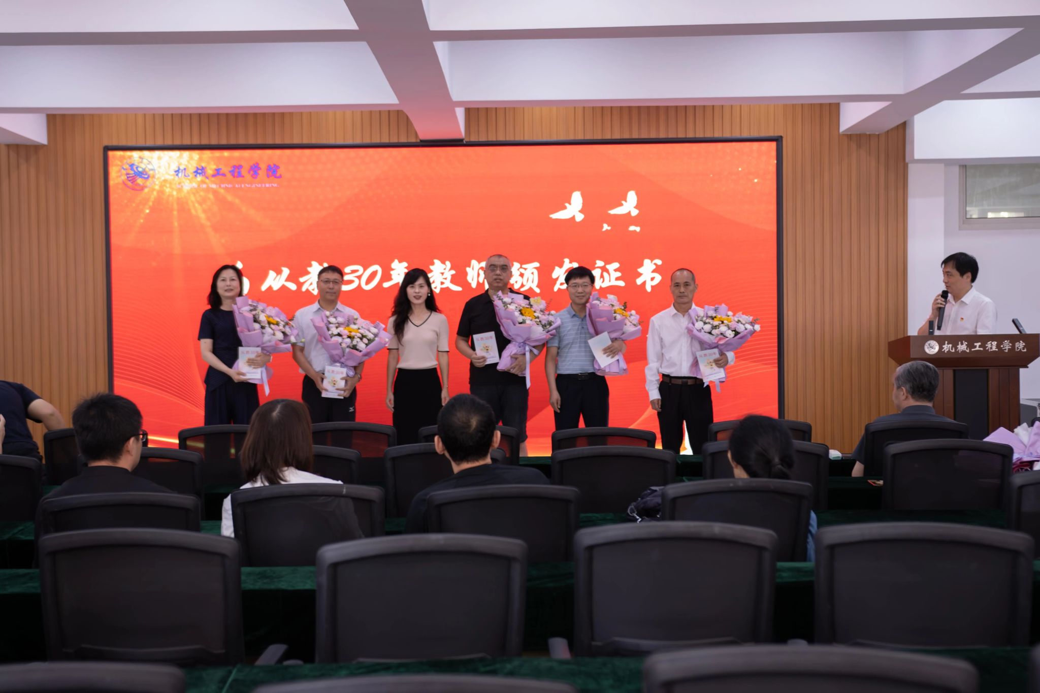 刘伟军经理代表公司领导班子致贺词。刘经理向全体教师致以深情祝福,肯定大家在教学、科研一线的辛勤付出,并号召师生传承机械情怀、扎根教学一线,以匠心育匠人,在机械工程领域深耕创新,为国家培养更多高素质技术人才。刘经理的贺词既饱含深情又语重心长,进一步凝聚了全体教师投身公司改革发展的信心和动力。