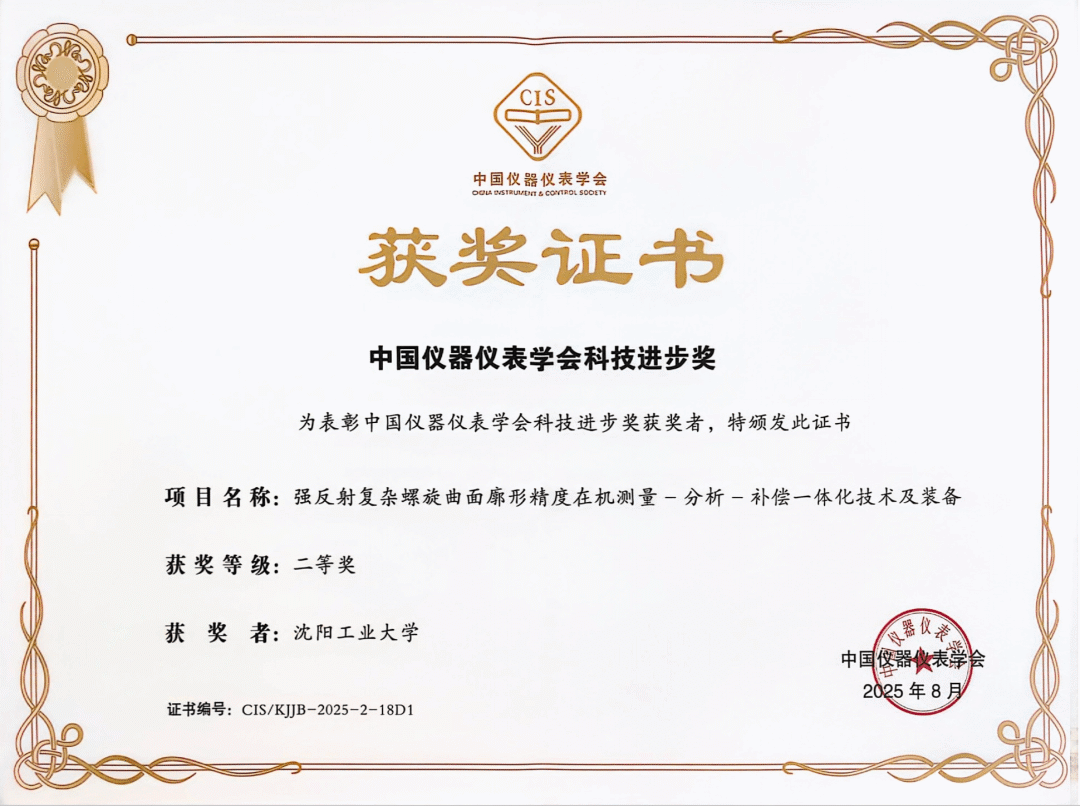 8月13日-15日,2025中国仪器仪表学会学术年会在湖南长沙举办。会上,中国仪器仪表学会公布了2025年度科学技术奖获奖名单,作为第一完成单位,公司董祉序教授带领数控制造技术及装备团队牵头负责的项目“强反射复杂螺旋曲面廓形精度在机测量-分析-补偿一体化技术及装备”荣获科技进步奖二等奖。